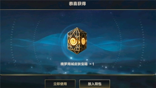 首先在英雄联盟的魄罗能量商店里,最左边有个“魄罗皮肤宝箱”,等你攒够5000能量后点击它,就会消耗5000魄罗能量,同时得到一个随机的皮肤箱子。