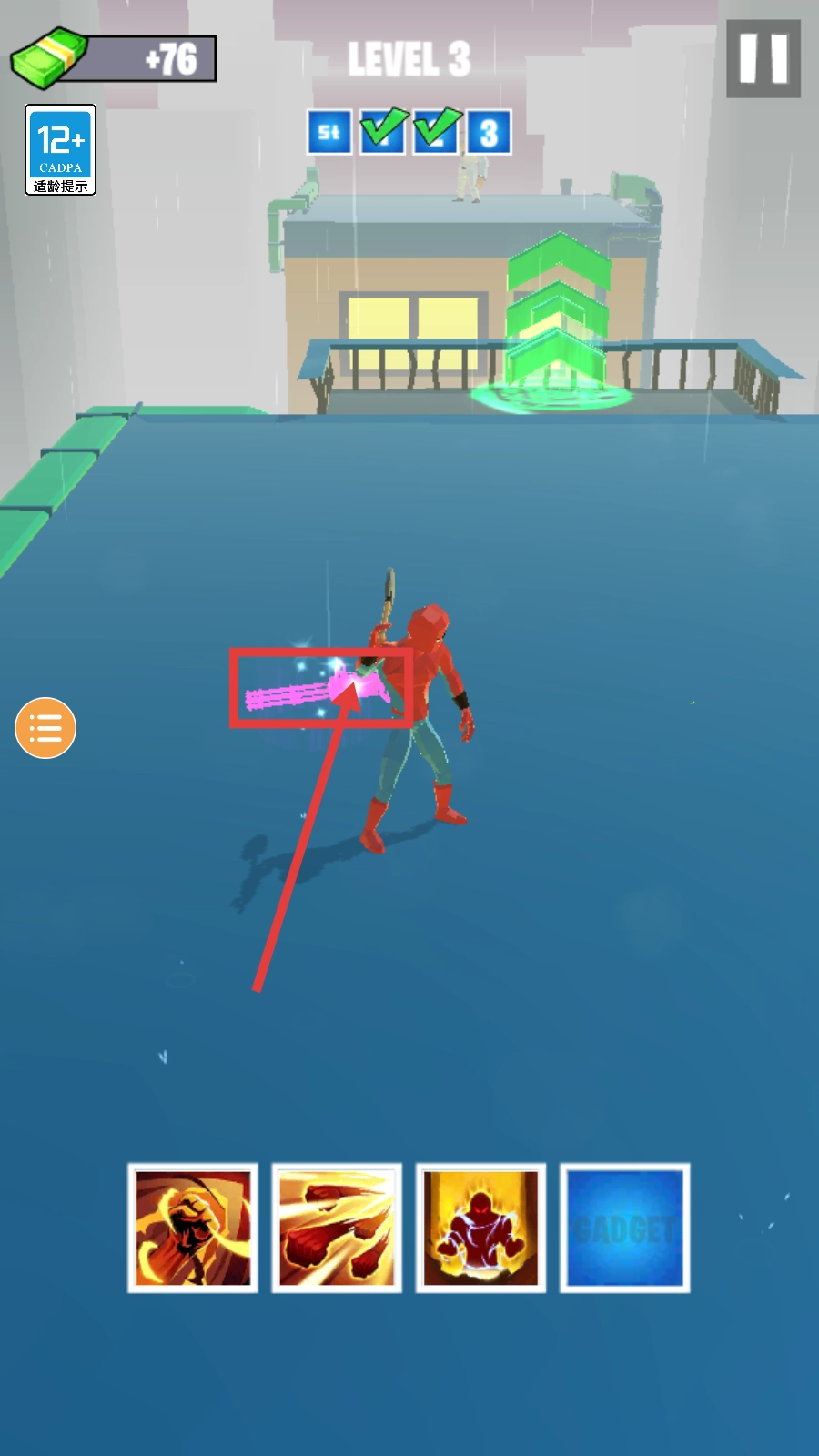 在LEVEL3关卡里收集粉色武器,借助它来增强攻击力,从而帮助你击败敌人、推进关卡进度。