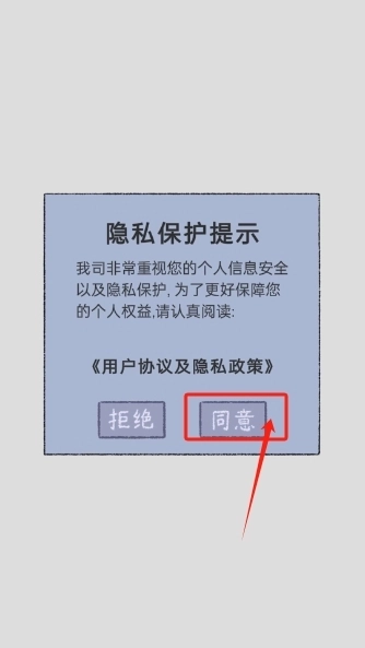 1、进入游戏,我们同意协议。