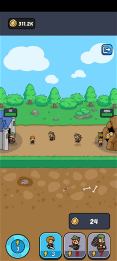 2、合理搭配你的阵容,游戏里设计的创意关卡能让你尽情挑战,收集金币资源去解锁更多战士、升级科技,以此提升他们的战斗力。