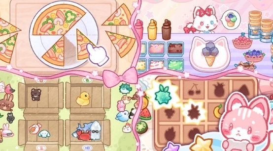 2、在这个虚拟世界中,每个场景都设有几个小游戏的入口,你能够随时带着小猫开启游戏。