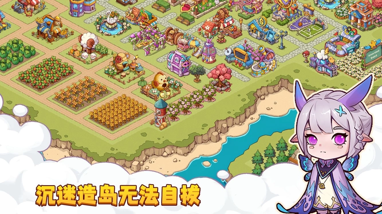 2、在这个梦幻海岛上,你可以自由地进行装扮与经营,解锁各类建设物品,还能免费在岛屿上铺设道路;