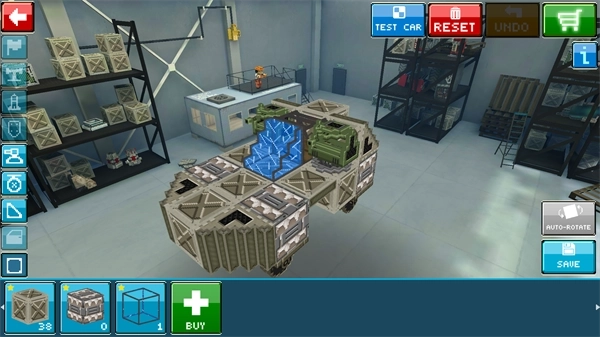 2、在游戏商店里,你能买到各式各样的战车组件,像方形模块、三角模块、舱口甲板、车轮、炮塔、盾牌、涡轮机、尾翼之类的都有。你可以尽情施展自己的创意,随意搭配组合这些组件,打造出专属于你的无敌战车。