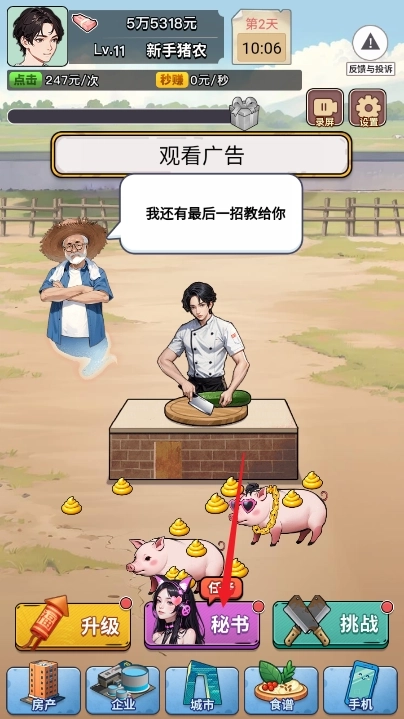 这款以逆袭故事为背景的小游戏里,玩家将化身养猪人,通过完成各类养猪相关的工作来赚取收益。随着持续工作与财富的逐步积累,你可以招募助理、结识形形色色的人物、触发隐藏的剧情彩蛋,最终实现华丽逆袭。