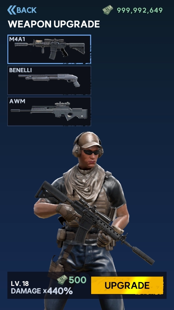 4、进入后你可以提升枪支的威力,点击底部的升级按钮即可操作,升级需要消耗金钱,而且等级越高,升级所需的金钱数量也会相应增加。