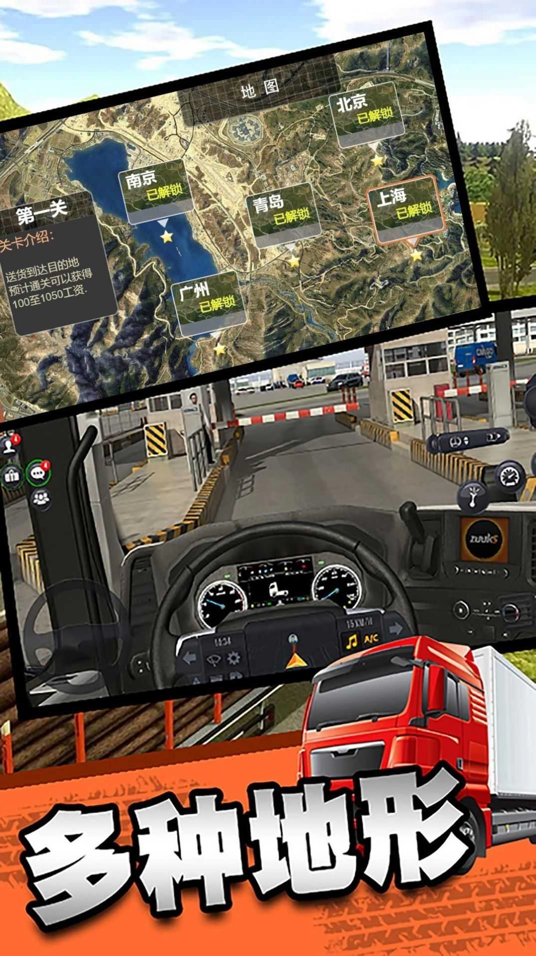 游戏中提供了多种运输任务,从城市到乡村,从平原到山地,每一段路程都充满挑战。玩家需要根据货物类型选择合适的卡车,并规划最佳运输路线。