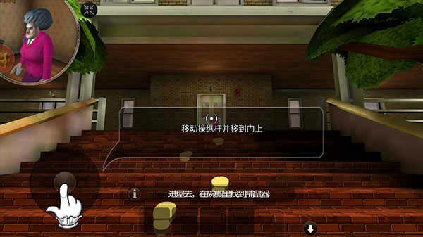 3、左下角的按钮支持自由移动,右侧屏幕通过滑动能够调整视野,左上角显示的是邻居家的监控画面,你可以随时查看老师所在的位置。