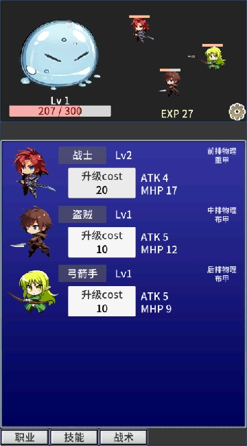 2、玩家可借助底部的升级面板,消耗相应资源来提升角色等级。在当前版本中,战士、法师与刺客这三大职业已开放,每个职业都拥有其独特的战场定位。