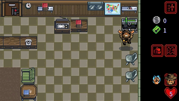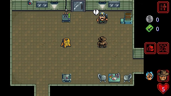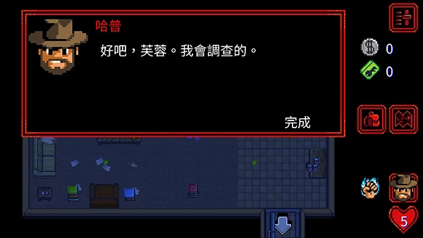 本作采用俯视角自由漫游机制,玩家将化身经验老道却略带疲惫的霍金斯警长,循着蛛丝马迹展开调查。从晨雾弥漫的橡树街到藤蔓缠绕的幽暗林地,从布满涂鸦的废弃商场到戒备森严的地下实验室,每一处场景都暗藏线索与伏笔。你可以挥动撬棍砸开木箱、用消防斧劈开锈蚀铁门,甚至徒手制服巡逻守卫;在搜寻过程中拾取恢复体力的红心、流通于黑市的旧钞金币、开启禁地的加密门卡,更要谨慎避开自动激活的安全力场——稍有不慎,便可能惊动更高层级的监控系统。