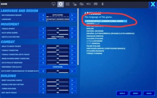 3、选择首个SYSTEMDEFAULT(CHINESE(CHINA,HANS))中文选项