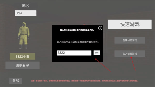 6、朋友可以在自己的界面上选择“加入秘密”选项,然后输入相同的房间密码“3322”。