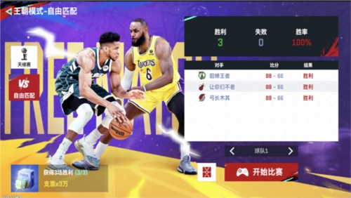 2、除了单人模式外,还设有在线3V3街球模式,玩家能够邀请或挑战全球范围内的其他玩家,检验自己球队的实力,进而在职业联赛中向篮球传奇发起挑战;