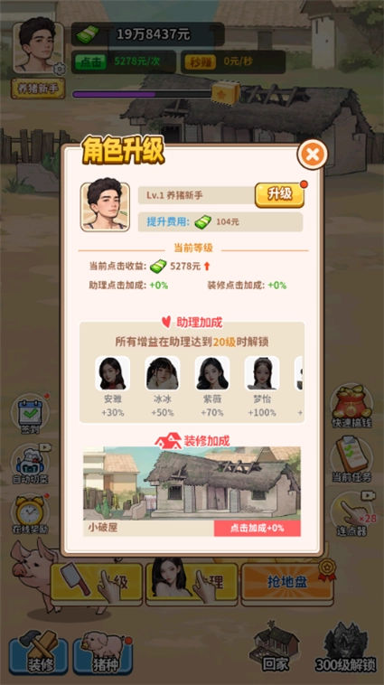 《养猪致富新农村修改版》是一款聚焦乡村养猪主题的模拟经营游戏。玩家将以返乡创业者的身份开启旅程,从搭建简易猪圈、喂养第一头小猪开始,一步步扩大养殖规模,解锁多样化的产业链条,最终建成规模化的养猪基地,圆就乡村致富的梦想。游戏融合了资源管理、市场交易、设施升级等多种玩法,画面采用治愈系的乡村写实风格,场景细节丰富细腻,无论是猪舍的搭建布局,还是饲料的调配加工,都能让玩家获得强烈的代入感。整体操作简单易上手,同时蕴含着丰富的经营策略,让玩家在体验养猪乐趣的过程中,感受乡村创业带来的成就感与喜悦,兼具休闲性与策略性。