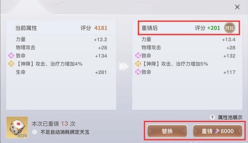 人物宝石镶嵌时,每提升一级都会增加战力,具体加成会随宝石品质(紫色/金色)而变化;人物的宝石和符文系统中,符文等级会随宝石总等级的提升而增加战力,且品质越高的符文,所需的玉龙角数量也越多。关于宝石的详细运用策略,我们会在宝石攻略里具体讲解,帮助大家最大化利用宝石!人物装备重铸则会依据重铸后的属性来调整战力——若重置出的稀有词条及数值越接近装备属性的最大值,战力提升就越明显。