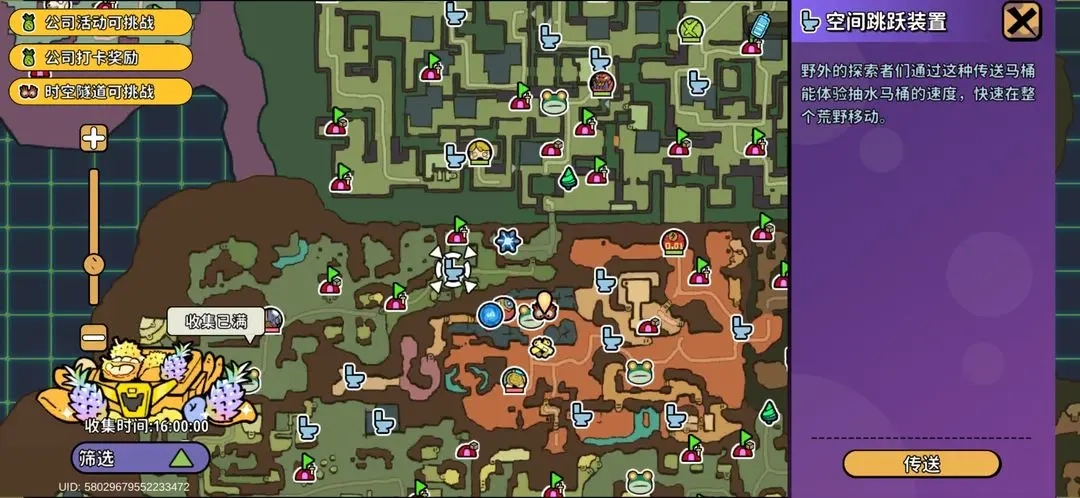 3、此外,马桶传送是无损传送,不会收取任何“费用”,也没有使用次数的限制。只要你不想继续跑动,就能打开地图,选择距离最近的马桶,完成快速传送。