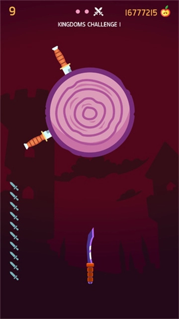 2、操作十分简单,你只需避免碰到飞刀就行,左下角显示的是我们需要飞出的数量。