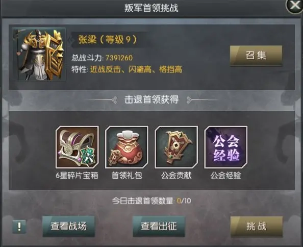 叛军军团:挑战叛军军团能获得丰厚的战功、碎片宝箱、公会贡献与公会经验。