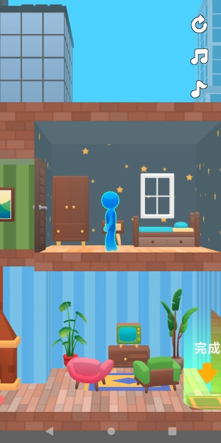 1.倾斜控制重力场:借助滑动屏幕或虚拟按键来调整房屋的三维角度,依靠重力的自然牵引力引导火柴人的移动路径,从而精准规划其行进路线。