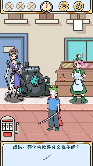 ①⭐点击左下角的机器获取超级黑钻,将超级黑钻给主角使用后,点击右侧的药剂商人,把商店界面向上滑动,选择购买装备破坏药剂;接着点击左边的强化师,把武器放入左侧的框中,再将装备破坏药剂放进中间的小框里,最后点击开始按钮。