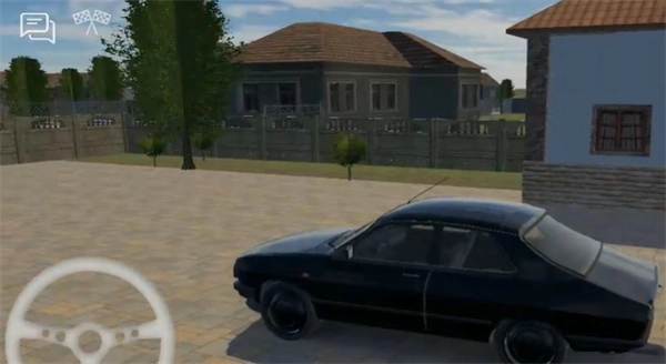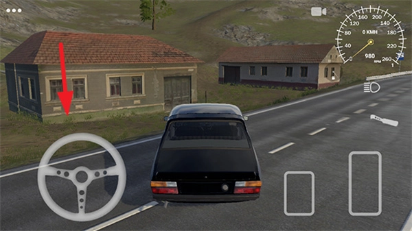 1、左边有个方向盘图标,持续转动它,就能操控车子在房间里移动。