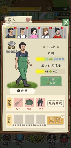 抓鱼大师,是一款能经营鱼塘虾塘的趣味模拟游戏。玩家得持续建造各类设施,以此吸引足够多的客人来抓鱼摸虾,同时还要不断投喂食物,这样就能收获大量水产,收益也会随之提升,还能开设烧烤摊,让体验变得更有意思。