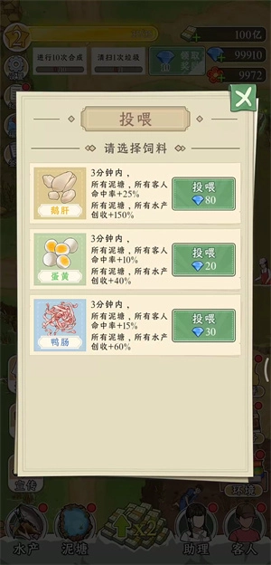 这里有不少水塘,像鱼塘、螺塘、黄鳝塘之类的,都能持续进行升级。
