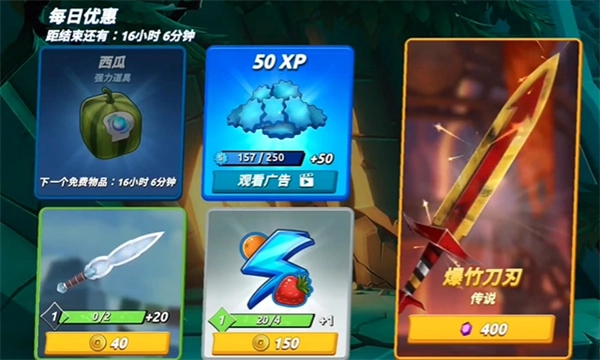 2、你可以自由搭配刀刃与道具,还能持续强化它们,这样就能更顺畅地切开更多水果啦!