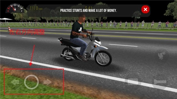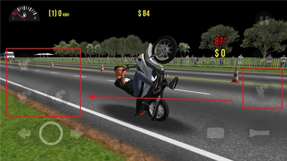 1、右侧的按钮用于使摩托车车头抬起,若与驾驶键同时按下,即可完成车头翘起前进的特技动作。