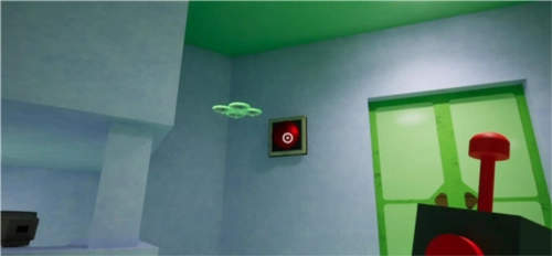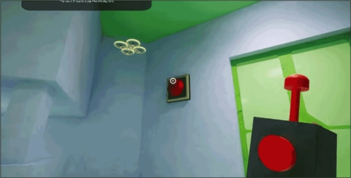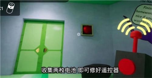 3、收集到两枚电池后,就能把遥控器修好,接着走到绿色的大门前,会发现门的左右两侧各有一个红色的按钮。
