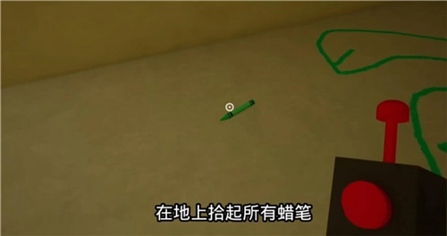 6、接下来要先把地面上所有的蜡笔都捡起来,这个很容易找,蜡笔掉落的地方比较集中。