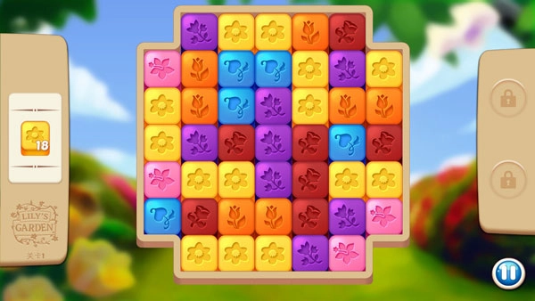通过挑战数百个精心设计的益智关卡,点击匹配花朵以收集所需资源。