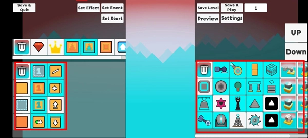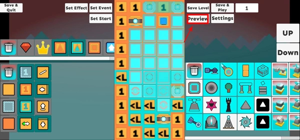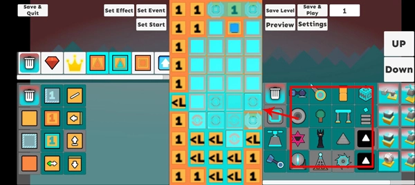 2、进入主界面后,先点击“开始”,接着点击“+”按钮,即可进入关卡编辑界面。