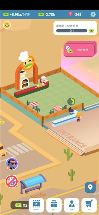 玩家需要做的是尽快获取收益,进而提升等级,创建更多美食广场。