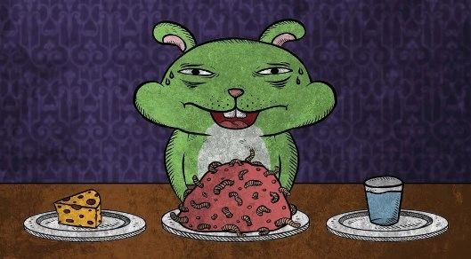 1、采用手绘水墨画的风格,营造出怪异的画面效果,并配合怪异恐怖的背景音乐。