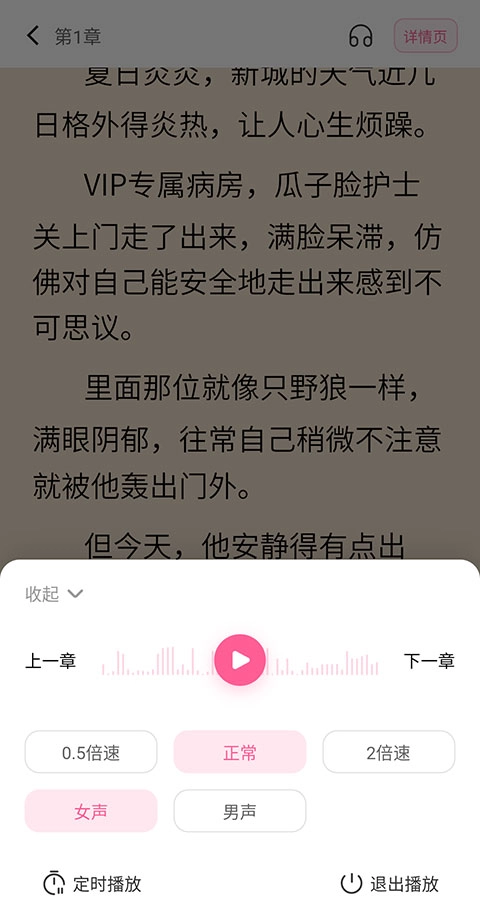 4、点击右上角的耳机图标,即可启用听书功能,还能对播放倍速、音色等相关设置进行调整。