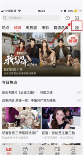 1、打开“乐视视频语音版”,点击右上角的“田字格图标”;