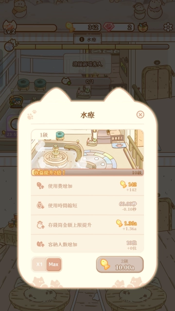1. 以治愈系为风格的模拟管理玩法,给予玩家一种满是可爱猫咪的酒店管理体验。