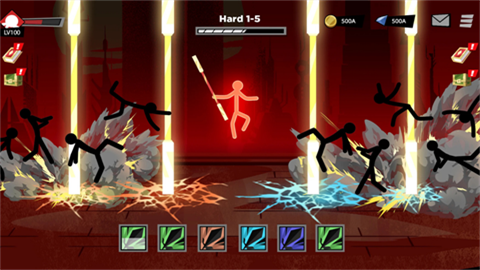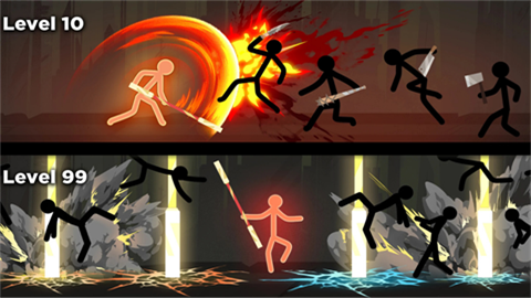 3、投身与敌人的战斗,在升级过程中解锁更多火柴人英雄。