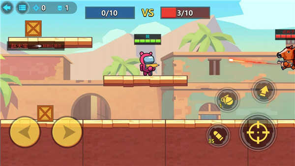 《太空杀大作战》,一款人气爆棚的多人竞技射击游戏。它巧妙融合枪战游戏的射击爽感与太空杀游戏的独特魔性趣味,二者相辅相成,玩起来别具一格,能为玩家带来绝佳游戏体验。快来操控你的主角,开启一场淋漓尽致的战斗,让刺激感拉满。协助主人公巧妙躲避敌人攻击,将所有敌人一举消灭!