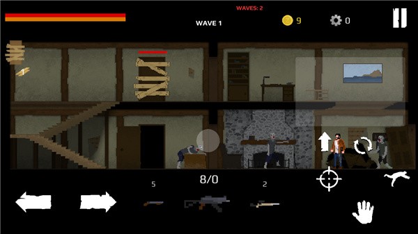 2、游戏内情况如图所示,左边的方向键用于移动,右边则是攻击键、拾取键以及翻越键。