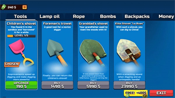 6、利用赚取的金币,你可以购买更强大的挖掘工具,或升级现有装备,提高挖掘效率。