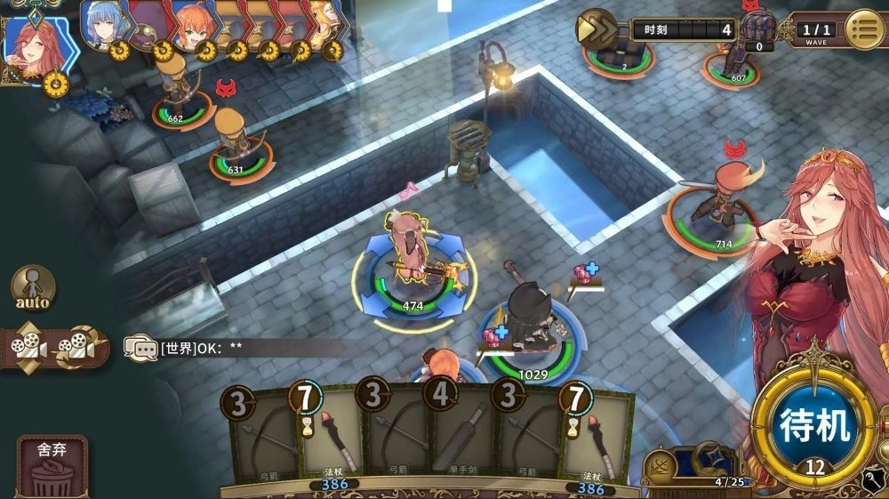 1、每一个角色的使用武器有限制,比如这个弓兵只能用弓牌,剑士只能用剑牌。而且游戏的战斗画面左下角可以看到一个垃圾桶,能够直接将不需要的卡丢进去重新抽,不过还得注意会消耗该回合角色的时刻。在前期的时候,建议入如下:比如全场只带弓手,法师,这样可以让你在选牌的时候不至于碰上一回合都无牌可用的状况,而且不太需要多余的操作。