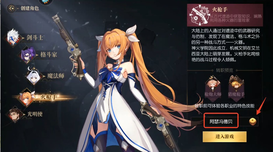 9、能够转职成为驱魔枪手与枪炮大师,枪炮大师光听名字,便能知晓其火力强劲。玩家挑选好职业后,点击“进入游戏”,即可开启属于你的全新游戏生涯!