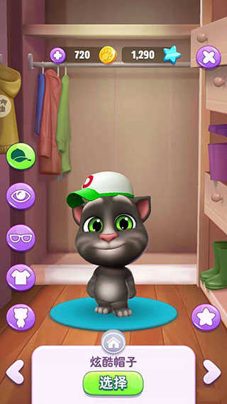 1、第一步,我们走进卧室,点击左侧的衣柜。进入衣帽间后,能看到左边有一列分类,分别为帽子、眼睛、眼镜、衣服以及小猫的皮毛,总计五项分类用于打扮。