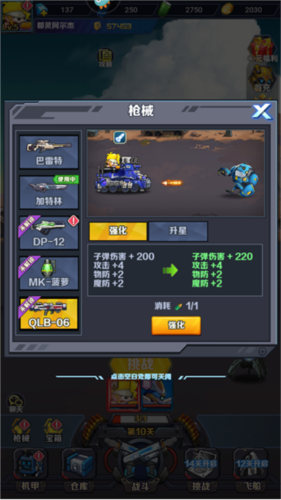 2、把战车升级到+10 以上,让子弹伤害超过400点,如此在快速战斗时就能获取大量合金。