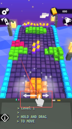 进入关卡:在000 ≥Levei i ≥ HOLD AND DRAG >TOMOVE界面点击开始。