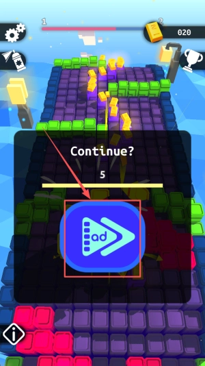 继续挑战:在020 Continue?界面中点击Continue按钮以继续。