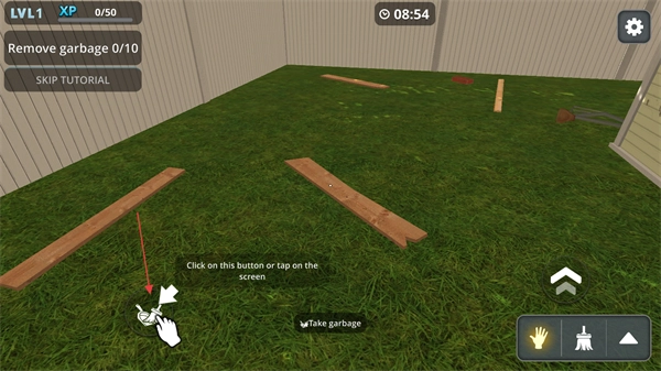 界面会呈现垃圾清理相关任务,点击垃圾本身或者左下角的垃圾工具按钮,即可完成场景内的垃圾清理工作,从而推动任务进度。