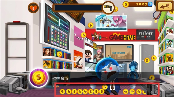 攻击到一定程度即可获取大量金币,点击拾取即可。