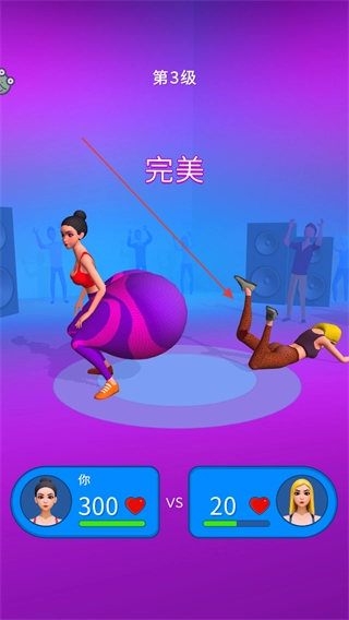 抵达终点后和对手展开对战,依靠体型上的优势战胜了对手,最终拿到了完美评价。